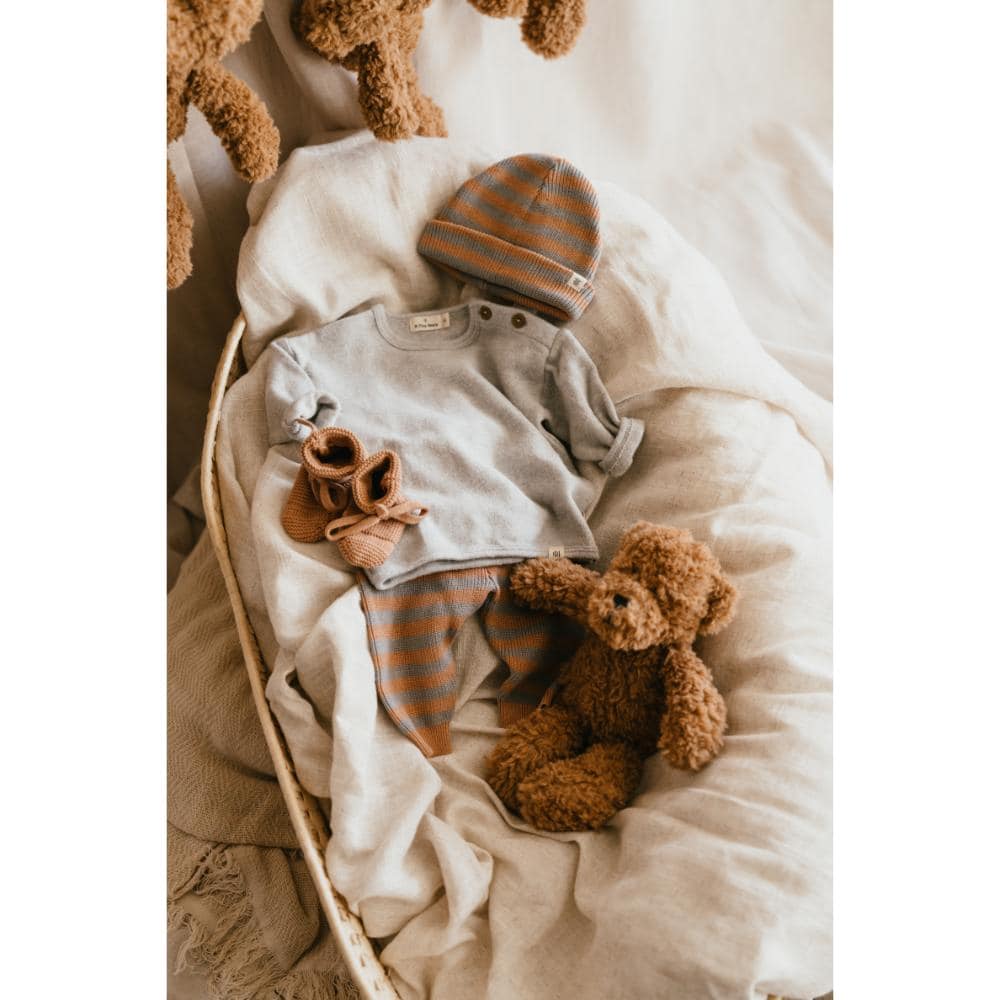 Gemaakt van biologisch katoen, zorgt deze muts ervoor dat de gevoelige hoofdhuid van je baby goed beschermd is tegen de elementen. De veelzijdigheid van deze muts maakt het een ideale keuze voor zowel binnen als buiten, of het nu gaat om een wandeling in de kinderwagen of een middagje spelen in de tuin.