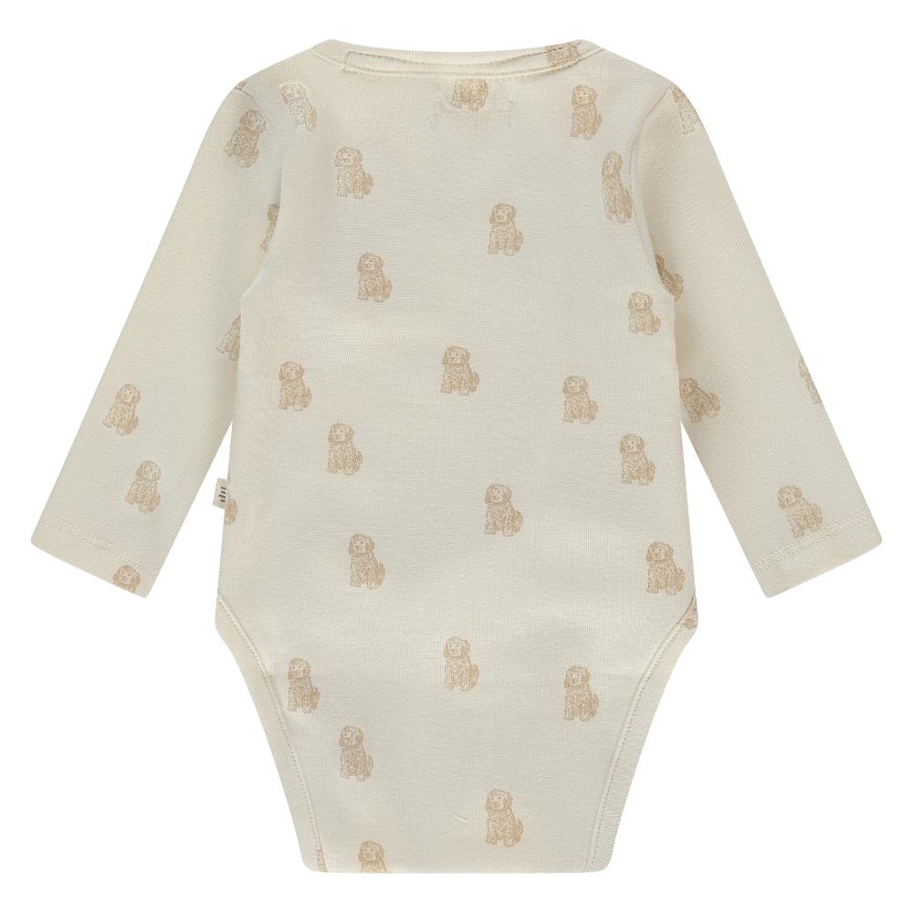 Baby Romper Dog is een onweerstaanbaar schattige toevoeging aan de garderobe van je kleintje. Deze romper combineert comfort met een speels design, perfect voor de allerkleinsten. De zachte ecru kleur is subtiel en tijdloos, waardoor het een veelzijdige keuze is voor elke gelegenheid.