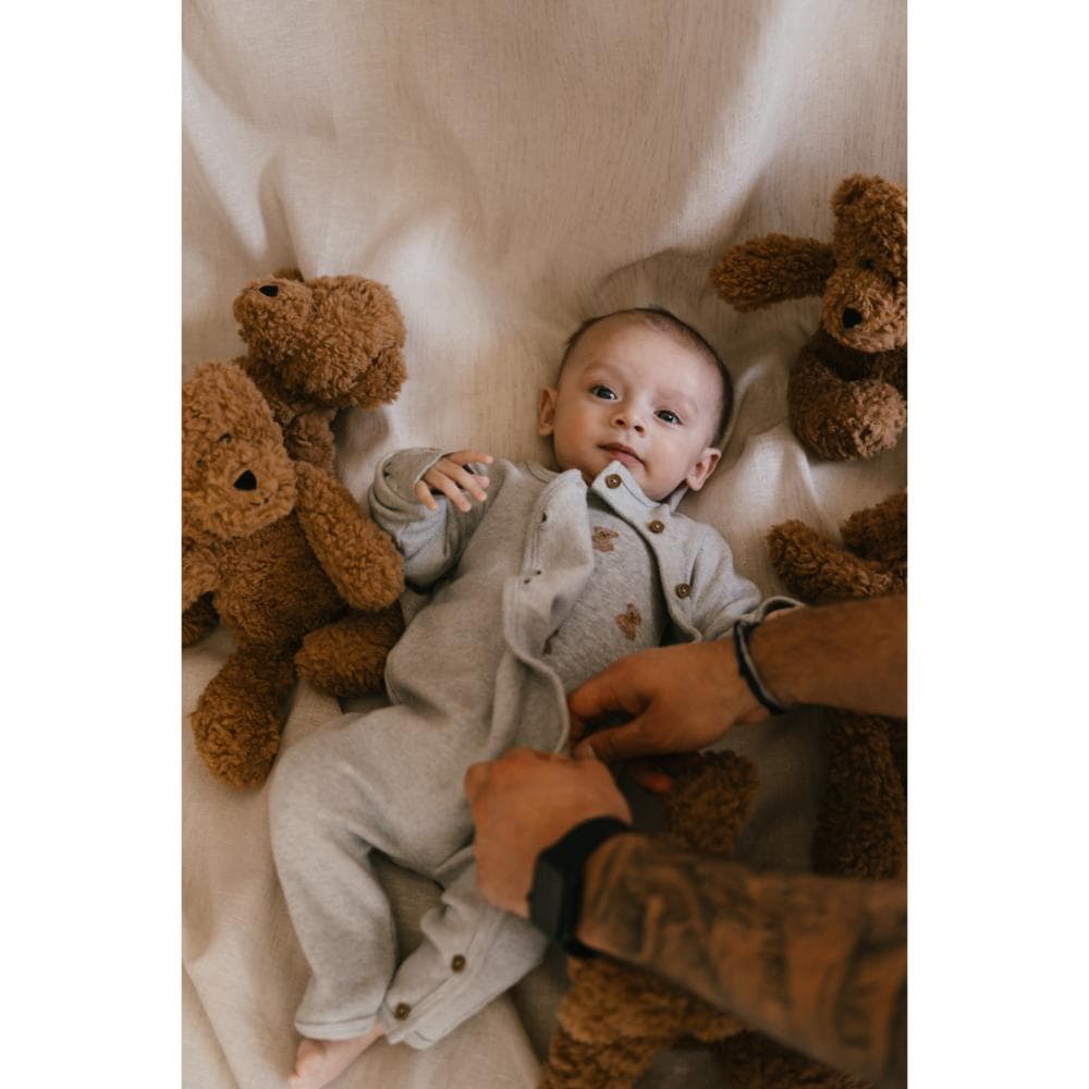 A Tiny Story – Baby suit Light Grey is de perfecte keuze voor jouw kleintje. Deze zachte en comfortabele babysuit is ontworpen om je baby de hele dag door comfort te bieden. Gemaakt van een mix van biologisch katoen, modal en elastaan, zorgt deze suit voor ultieme zachtheid en bewegingsvrijheid, zodat je kleintje rustig kan slapen en vrolijk kan ontdekken.