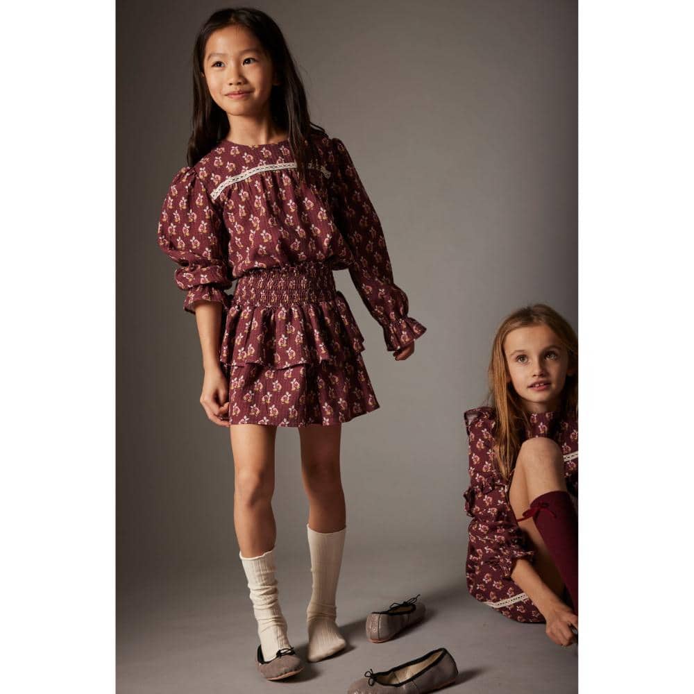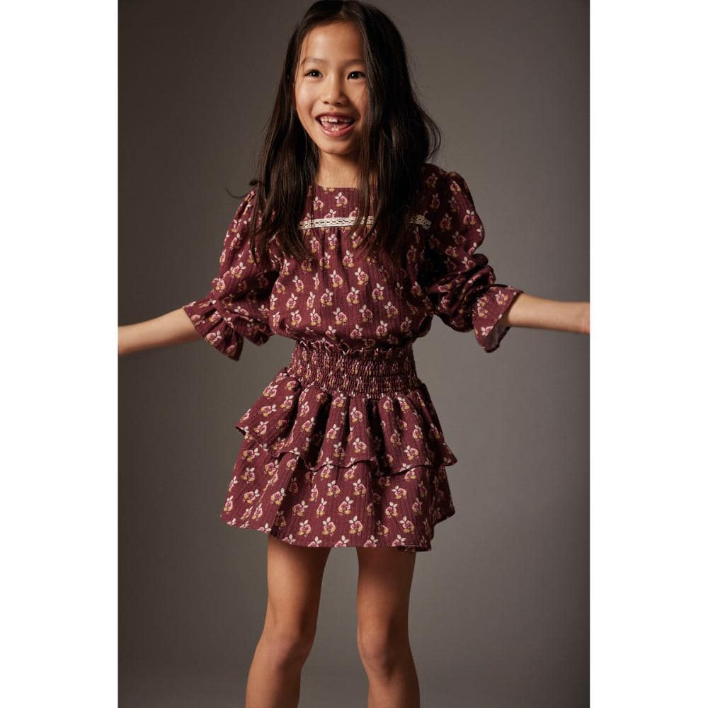 Gemaakt van hoogwaardige materialen, zorgt deze rok voor een comfortabele pasvorm die meebeweegt met elk avontuur. Beschikbaar in de maten 98 tot en met 140, is er voor ieder meisje een perfecte maat te vinden. De diepe bordeauxrode kleur voegt een vleugje verfijning toe aan elke outfit, en de rok is gemakkelijk te combineren met andere stukken uit de collectie.