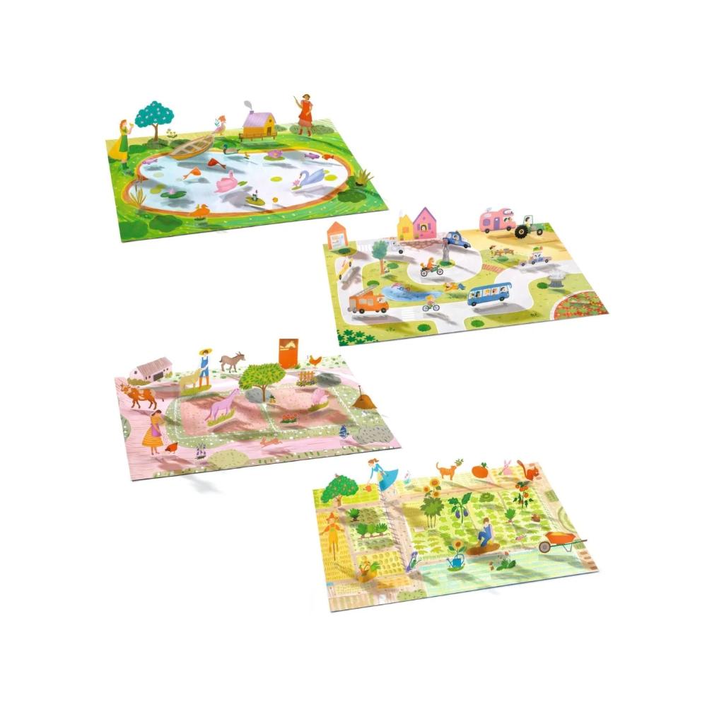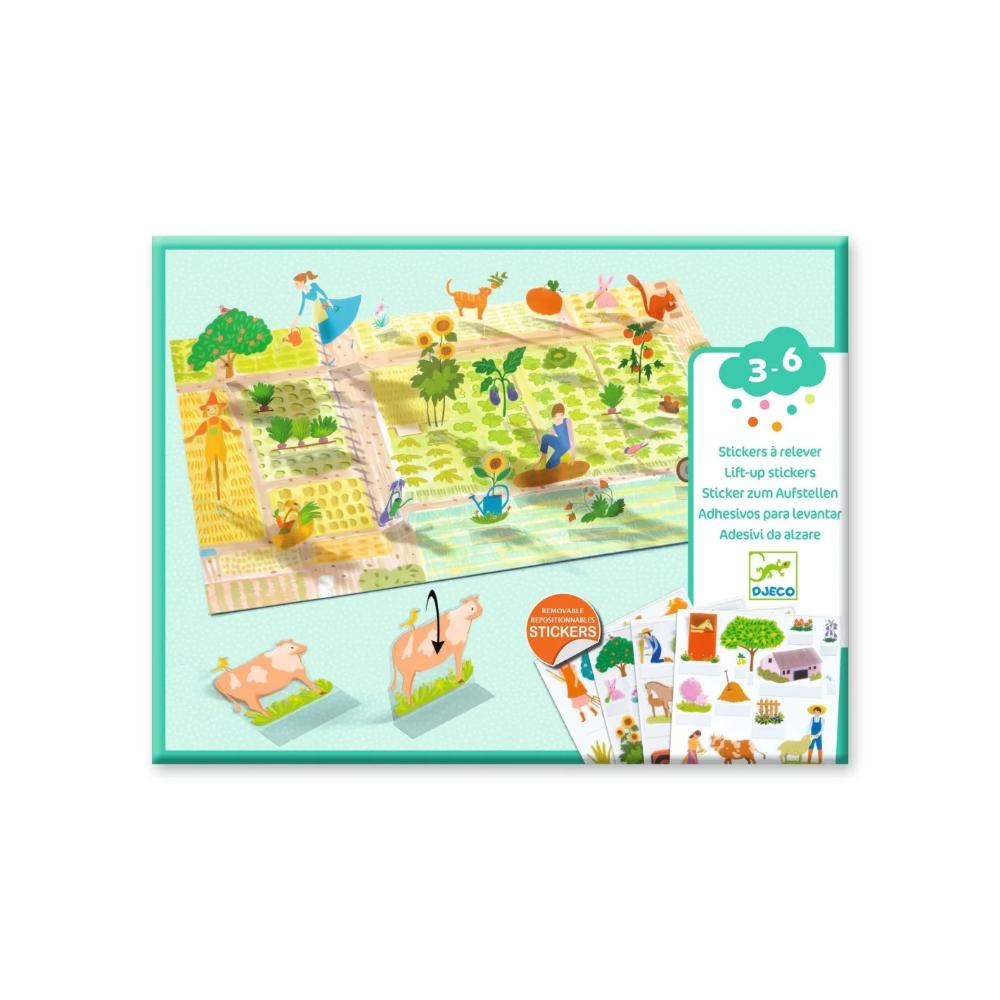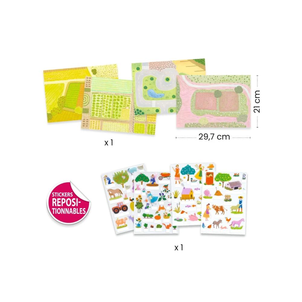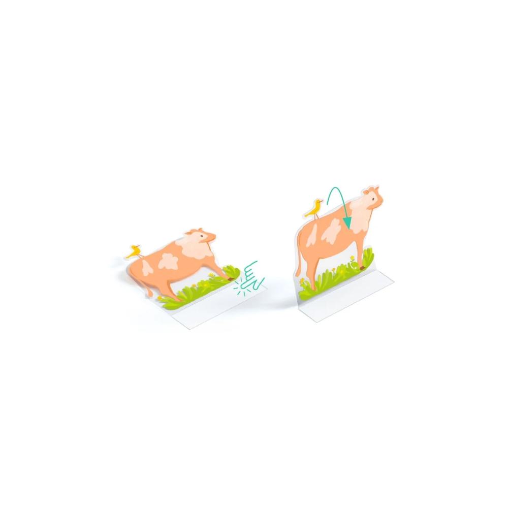 Je kindje plakt de herbruikbare stickers op de grote afbeeldingen en zet ze dan één voor één rechtop. Leuk om scènes in 3D te maken en eindeloze verhalen te verzinnen!