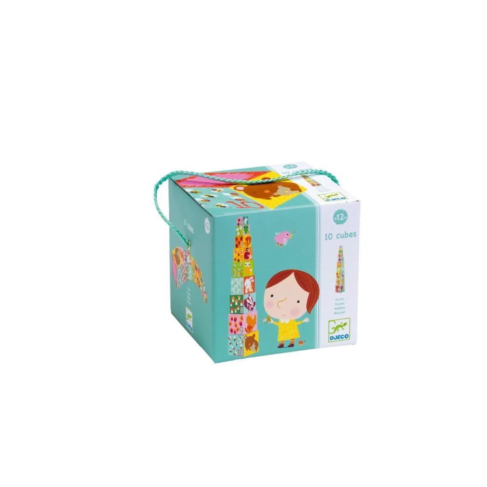 In elkaar schuivende blokken met het bos als thema. 10 dikke kartonnen blokken om ineen te voegen, stapelen en te laten vallen wanneer je maar wilt! Je kindje stapelt de blokken zo dat de plaatjes een logische volgorde vormen.