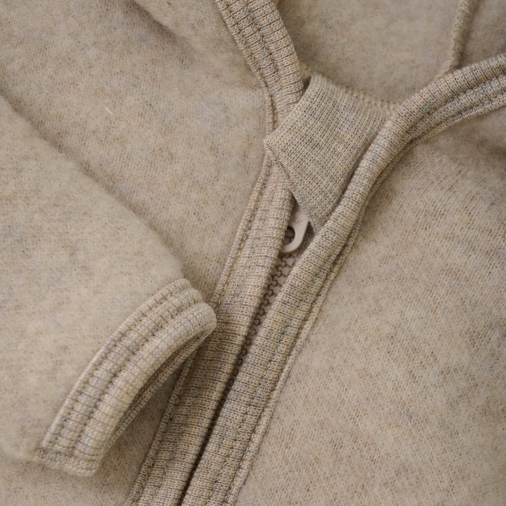 Prachtig wollen jasje in een beige kleur van het merk Huttelihut. Het wollen jasje in beige van Huttelihut is perfect voor de koude winterdagen, maar ook voor het voorjaar. Het jasje is gemaakt van een heel zacht wolfleece wat temperatuurregulerend werkt: het houdt je kindje warm als het koud is en ventileert als het warm is. Het jasje heeft een handige ritssluiting, dus geen gedoe met knoopjes. De ritssluiting is voorzien van een kinbescherming. De vaste capuchon zorgt voor nog meer warmte op koude dagen en maakt het jasje helemaal af.