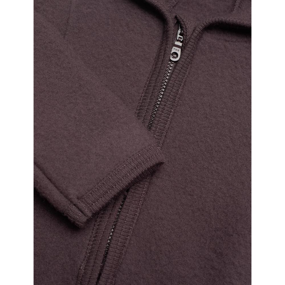 Prachtig wollen jasje in een donkerbruine kleur van het merk Huttelihut. Het wollen jasje in donkerbruin van Huttelihut is perfect voor de koude winterdagen, maar ook voor het voorjaar. Het jasje is gemaakt van een heel zacht wolfleece wat temperatuurregulerend werkt: het houdt je kindje warm als het koud is en ventileert als het warm is. Het jasje heeft een handige ritssluiting, dus geen gedoe met knoopjes. De ritssluiting is voorzien van een kinbescherming. De vaste capuchon zorgt voor nog meer warmte op koude dagen en maakt het jasje helemaal af.