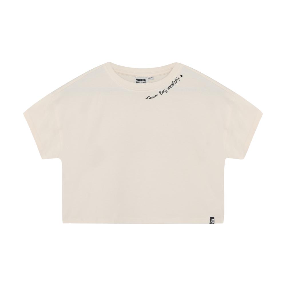 Indian Blue Jeans – T-shirt Cropped J’Adore is een must-have voor elke jonge fashionista. Dit off-white cropped T-shirt combineert moeiteloos stijl en comfort, waardoor het perfect is voor allerlei avonturen. Met zijn opvallende “J’Adore” print op de voorkant, voegt dit shirt een speelse en trendy twist toe aan elke outfit.