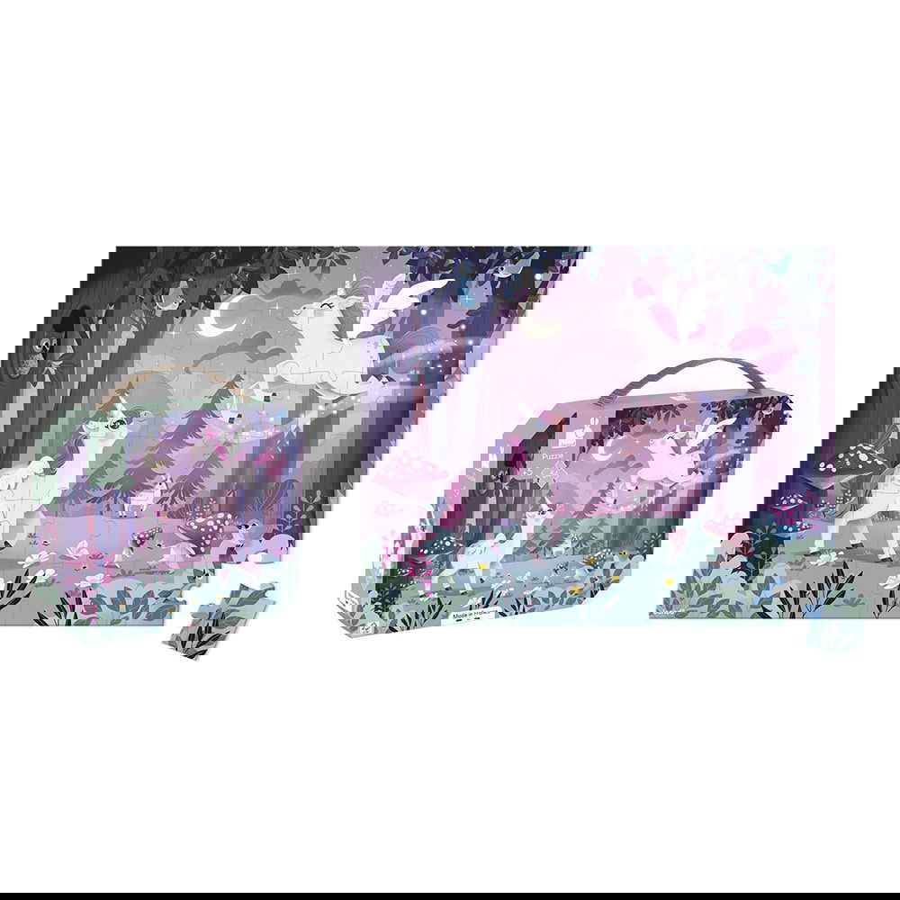 Dompel jezelf onder in de betoverende wereld van de eenhoorns! Deze mooie kartonnen puzzel met eenhoorns als thema bestaat uit 54 stukken. Er is tevens 1 poster meegeleverd om uw kind te helpen met het voltooien van deze puzzel. De puzzel is eenvoudig mee te nemen met behulp van het leuke koffertje. Deze puzzel is ideaal voor het ontwikkelen van geduld en de fijne motoriek. FSCTM-gecertificeerd en op basis van plantaardige inkt. Puzzel voor kinderen vanaf 5 jaar.