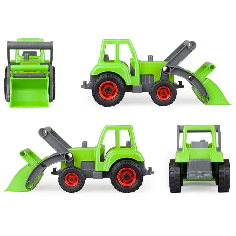 LENA® EcoActives Tractor met schop. Een verbinding van hout en plastic met de geur van hout. Gegalvaniseerde stalen assen. De bestuurderscabine kan worden geopend om te spelen. Afsluitbare schop. Trekhaak. 36 cm. Geschikt voor binnen- en buitengebruik voor kinderen vanaf 2 jaar. Gemaakt in Europa. TÜV gecertificeerd.