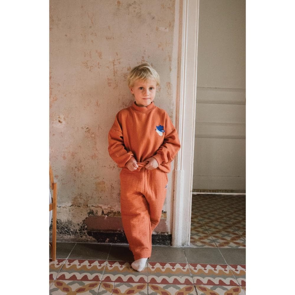 Gemaakt van 96% biologisch katoen en 4% elastaan, is het sweatshirt zacht voor de huid en flexibel genoeg voor alle speelavonturen. De terracotta kleur voegt een warme, natuurlijke tint toe aan de garderobe van je kleintje, terwijl de biologische materialen ervoor zorgen dat je een bewuste keuze maakt voor het milieu.