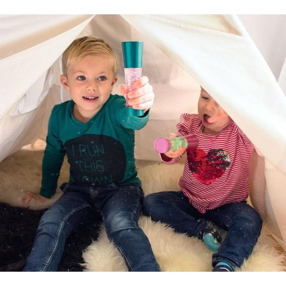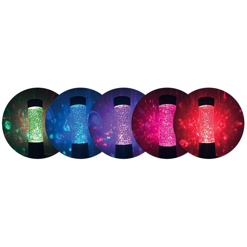 Originele, hippe musthave Lavalamp. Schud of draai met de shaker, zodat de buis licht geeft en glitters omhoog en omlaag dwarrelen. Het licht zal steeds van kleur veranderen. 15 cm hoog x 6 cm doorsnede. Het lampje gaat daarna vanzelf weer uit!