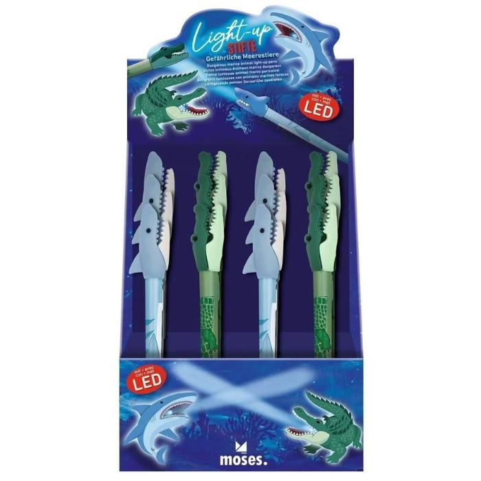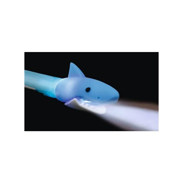 Pen en zaklamp in één. Deze super coole lichtgevende pennen met krokodil of haai wil je hebben. Bevat blauwe inkt (niet vervangbaar). Werkt op batterijen.