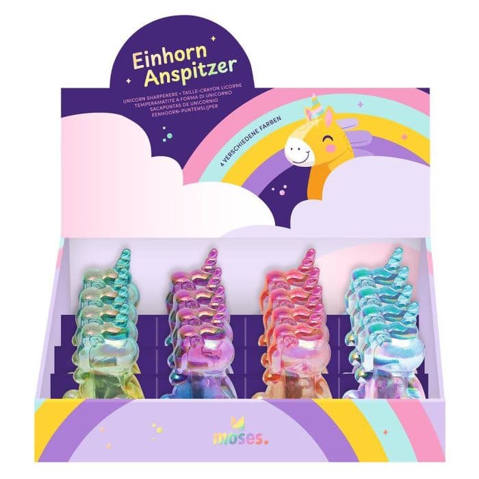 Slijper in de vorm van een metallic eenhoorn, afmeting: 5.6 x 3.1 x 4 cm.