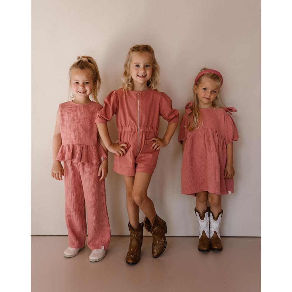 Deze Rose Top in Dusty Rose is perfect voor een ontspannen dagje thuis of een uitstapje naar het park. De zachte kleur maakt het eenvoudig te combineren met een spijkerbroek of een leuke rok, waardoor je kind er altijd stijlvol uitziet.