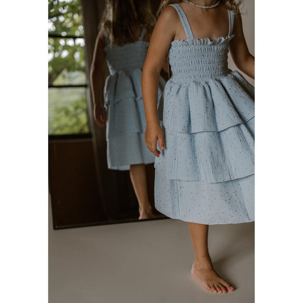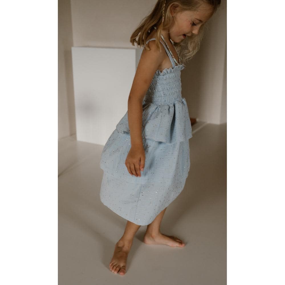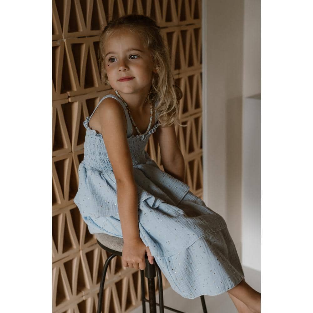 Navy Natural – Ruffle Dress Blue & Gold is een prachtige toevoeging aan de garderobe van elke kleine meid. Deze jurk combineert speelse ruches met een tijdloze blauwe kleur en subtiele gouden accenten, waardoor het een stijlvolle keuze is voor zowel dagelijks gebruik als speciale momenten. De zachte stof zorgt ervoor dat je kleintje zich comfortabel en vrij kan bewegen, terwijl de duurzame kwaliteit bijdraagt aan een bewuste keuze voor de toekomst.