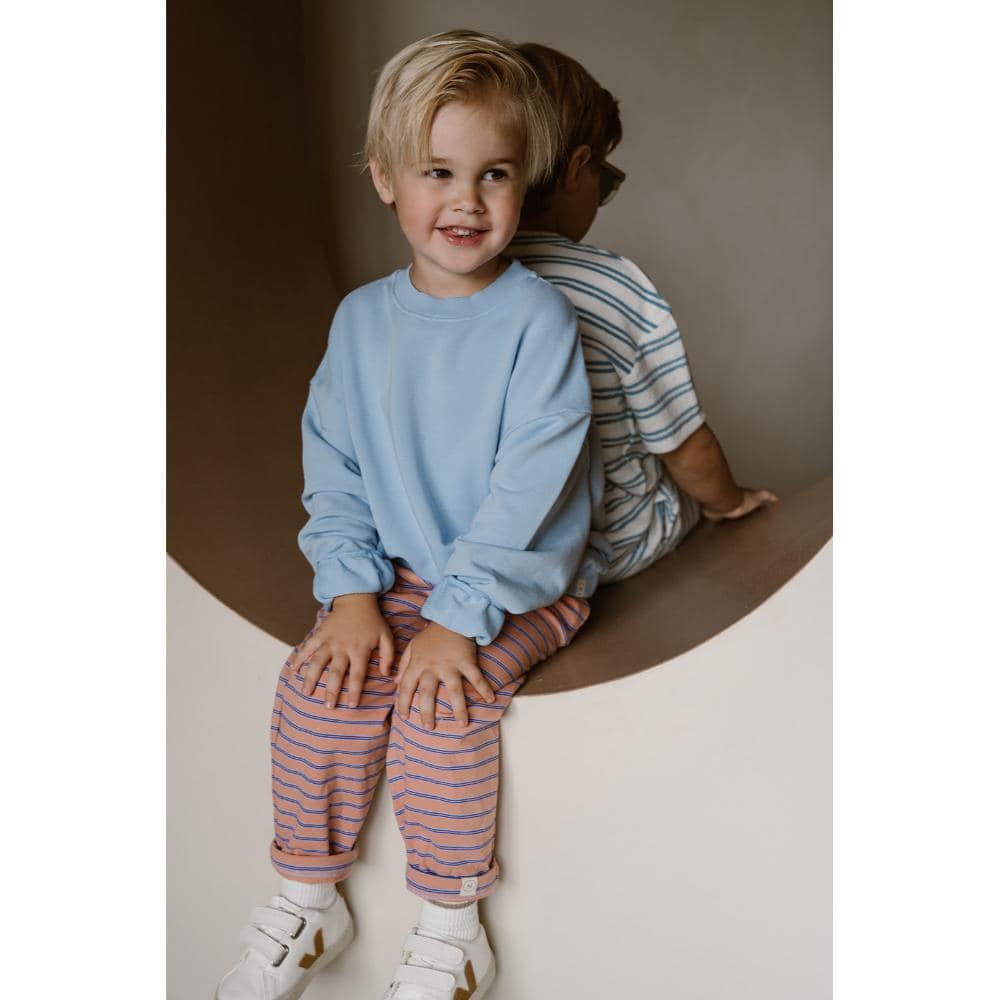 De Navy Natural – Sunset Sweater Light Blue is perfect voor koelere dagen, of je nu thuis bent of naar het park gaat. Deze trui houdt je kind warm zonder in te boeten op bewegingsvrijheid. Combineer de trui met een comfortabele jeans of een zachte joggingbroek voor een complete look die zowel praktisch als stijlvol is.