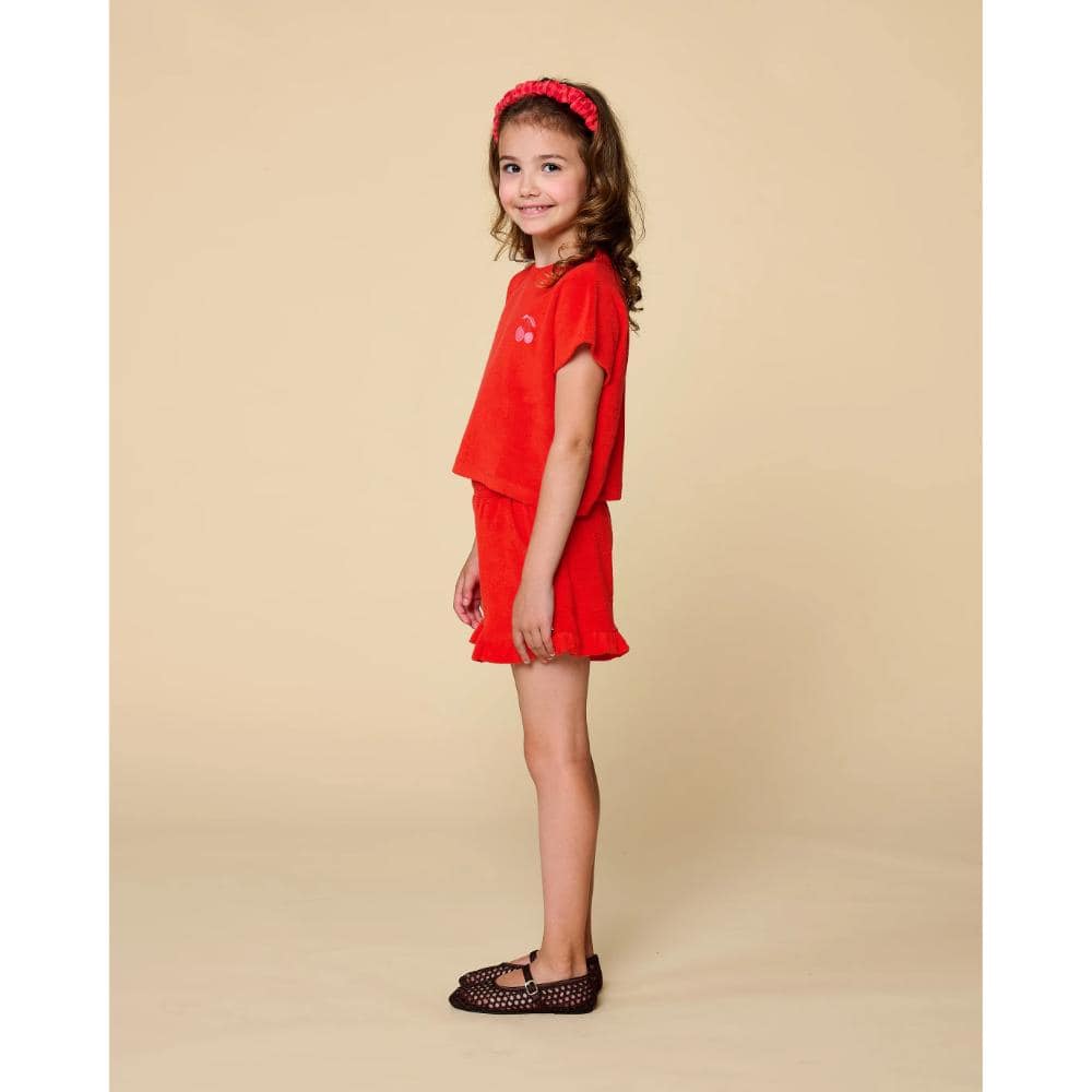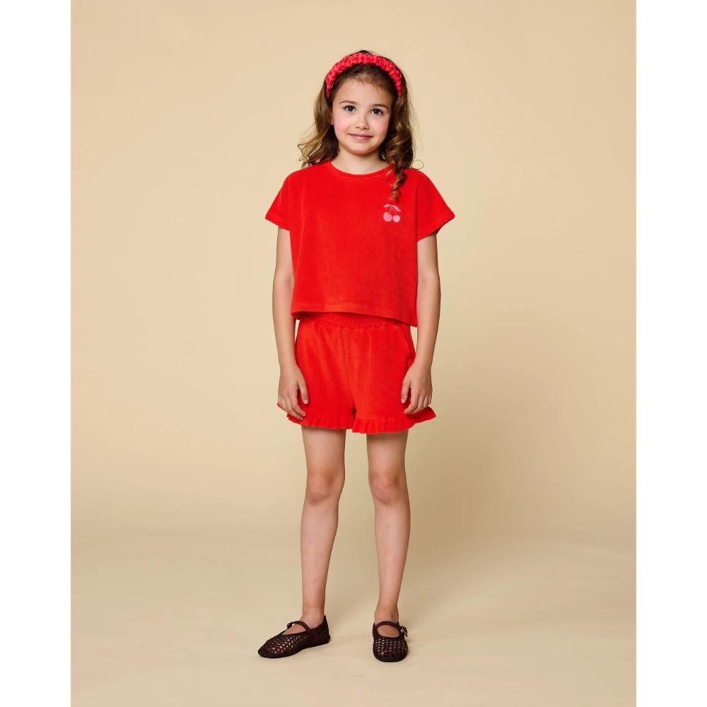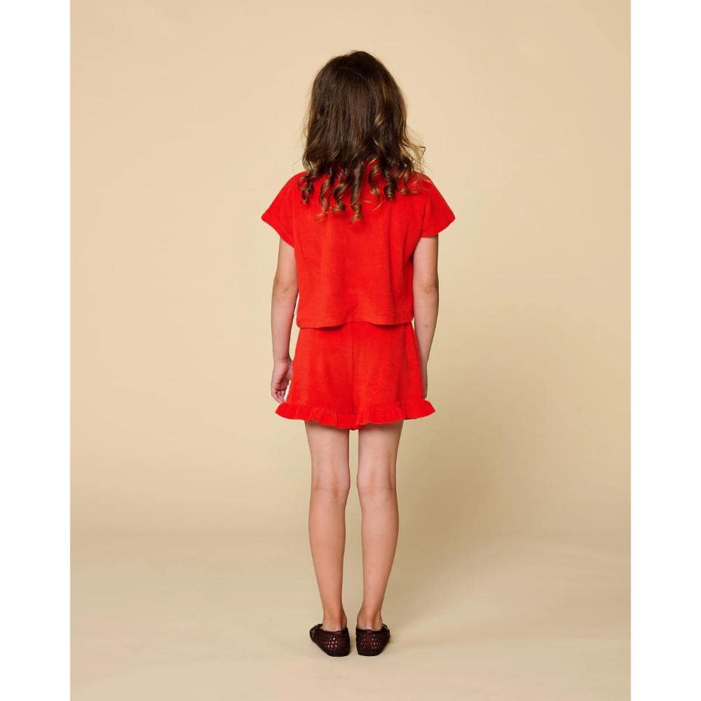 Petit Blush – Towel Short Grenadine is de perfecte keuze voor meisjes die houden van comfort en speelsheid. Deze zachte, rode shorts zijn gemaakt voor eindeloze zomerdagen vol avontuur. Met een tijdloze uitstraling en een comfortabele pasvorm zijn ze ideaal voor actieve kinderen die vrij willen bewegen.