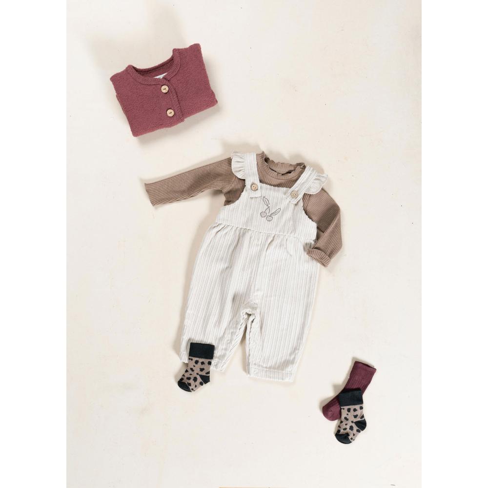 Het Rib Flamé T-shirt is vervaardigd van een fijne ribstof die zorgt voor een subtiele textuur en extra stretch. De pasvorm is ontworpen om gemakkelijk aan- en uit te trekken, wat het een praktische keuze maakt voor zowel ouders als de kleintjes. De taupe kleur geeft een rustige, natuurlijke uitstraling die gemakkelijk te combineren is met andere items in de garderobe van je kleintje.