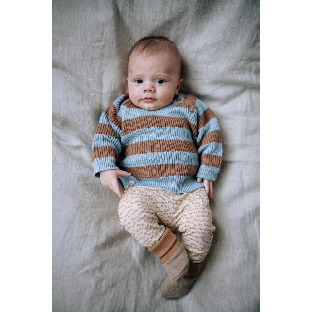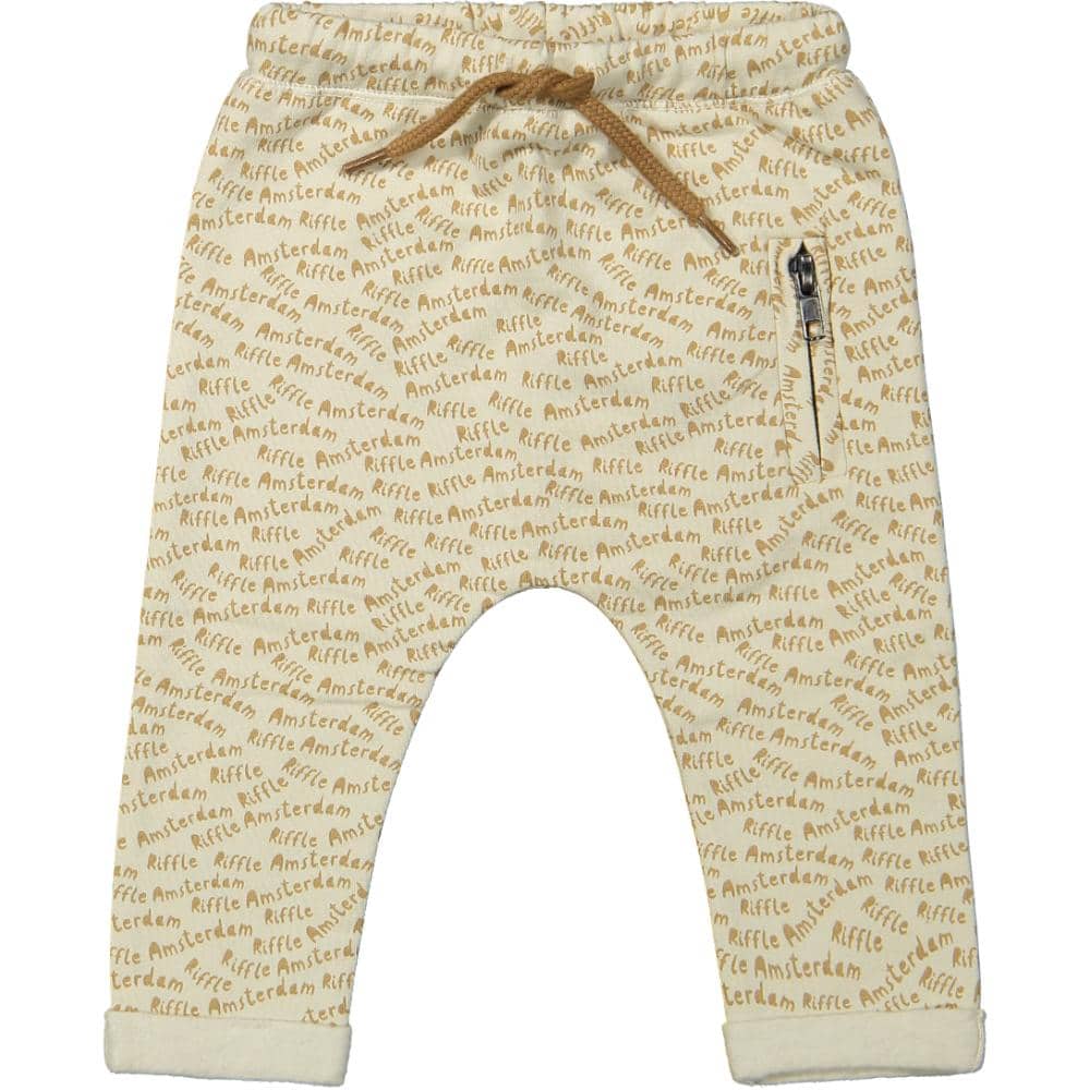 Riffle Amsterdam – Baggy Pants Pax AOP is de perfecte keuze voor de kleine avonturiers onder ons. Deze broekjes zijn ontworpen voor comfort en stijl, zodat je kleintje zich vrij kan bewegen en ontdekken. Gemaakt van een zachte mix van 95% biologisch katoen en 5% elastaan, bieden deze broekjes een heerlijk draagcomfort met net genoeg stretch voor actieve baby?s. De off-white kleur maakt ze makkelijk te combineren met andere kledingstukken, waardoor je moeiteloos een schattige outfit samenstelt.