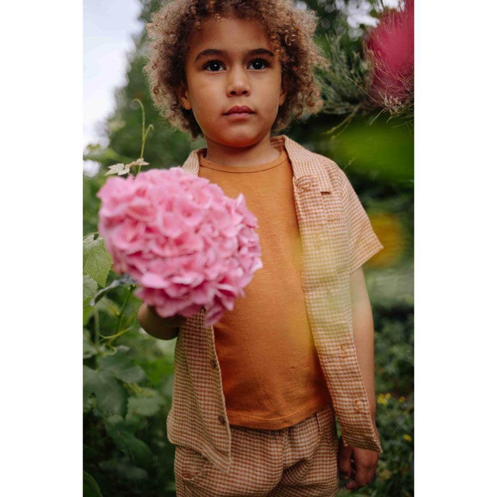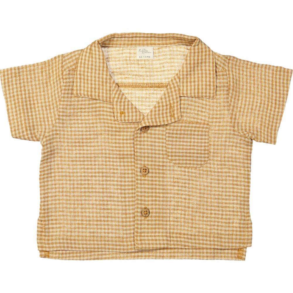 Riffle Amsterdam – Blouse Cody Square Brown | Materiaal: 30% linen / 70% cotton woven