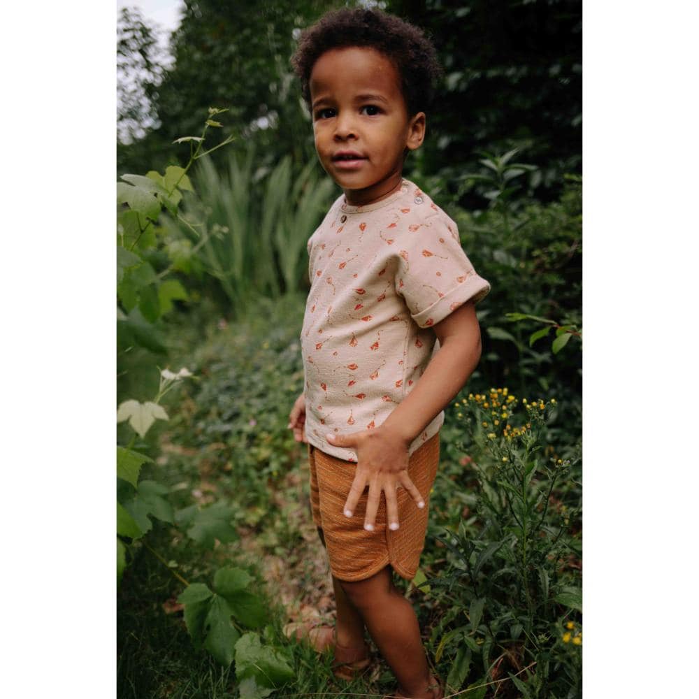 Riffle Amsterdam – Short Zino Brown Stripe | Materiaal: 100% organic cotton terry