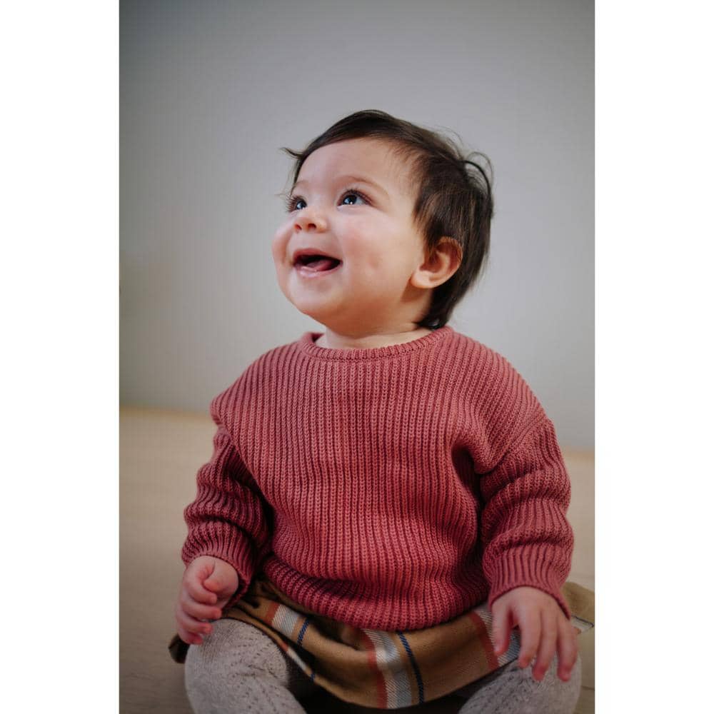 Combineer de Riffle Amsterdam Sweater Knit Mees met een paar schattige broekjes of leggings voor een complete, speelse look die zowel jij als je baby geweldig zullen vinden.