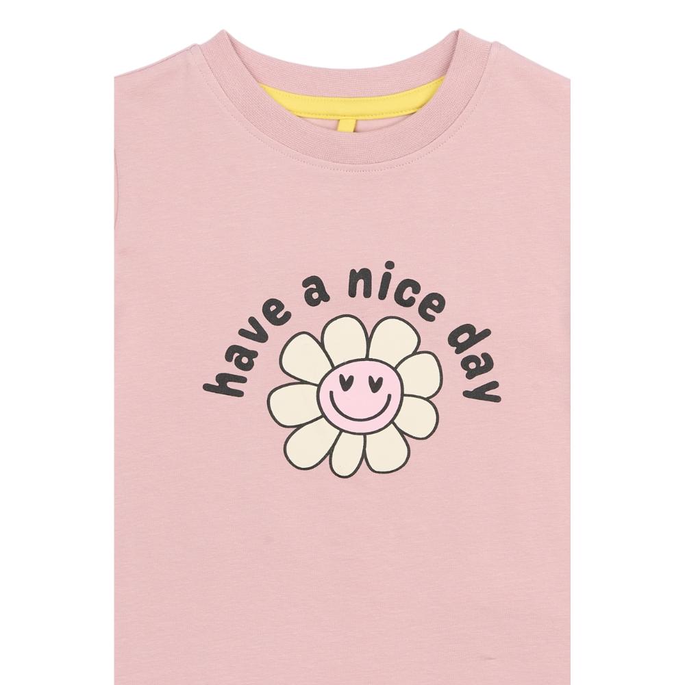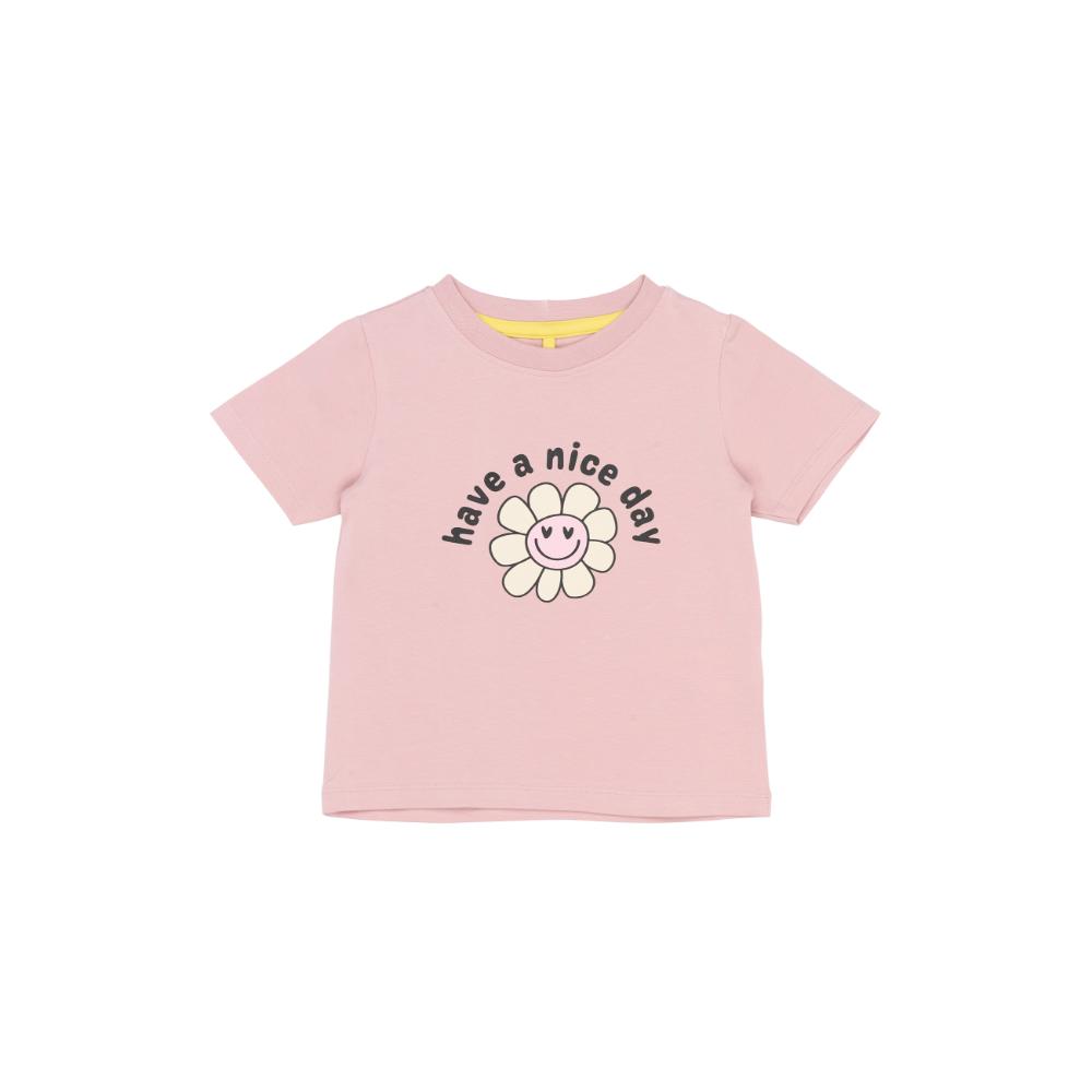 This short-sleeve tee for toddler girls features a classic crew neckline and a straight, relaxed fit. It is made from 95% cotton and 5% elastane, providing light stretch for easy movement. The front shows a daisy graphic with the text “have a nice day.” A clean hem and simple shape make it easy to layer under cardigans or jackets. Works well styled with shorts, leggings, or skirts for everyday wear. – Short sleeves and crew neckline with a relaxed, straight fit – Front print featuring a daisy and “have a nice day” wording – 95% cotton and 5% elastane for stretch; works well for layering and easy styling – Contains 95% Cotton Organic GOTS, 5% Elastane. Luxkids is GOTS certified by Control Union, 842535. Only the products which carry the GOTS label and claim are certified.