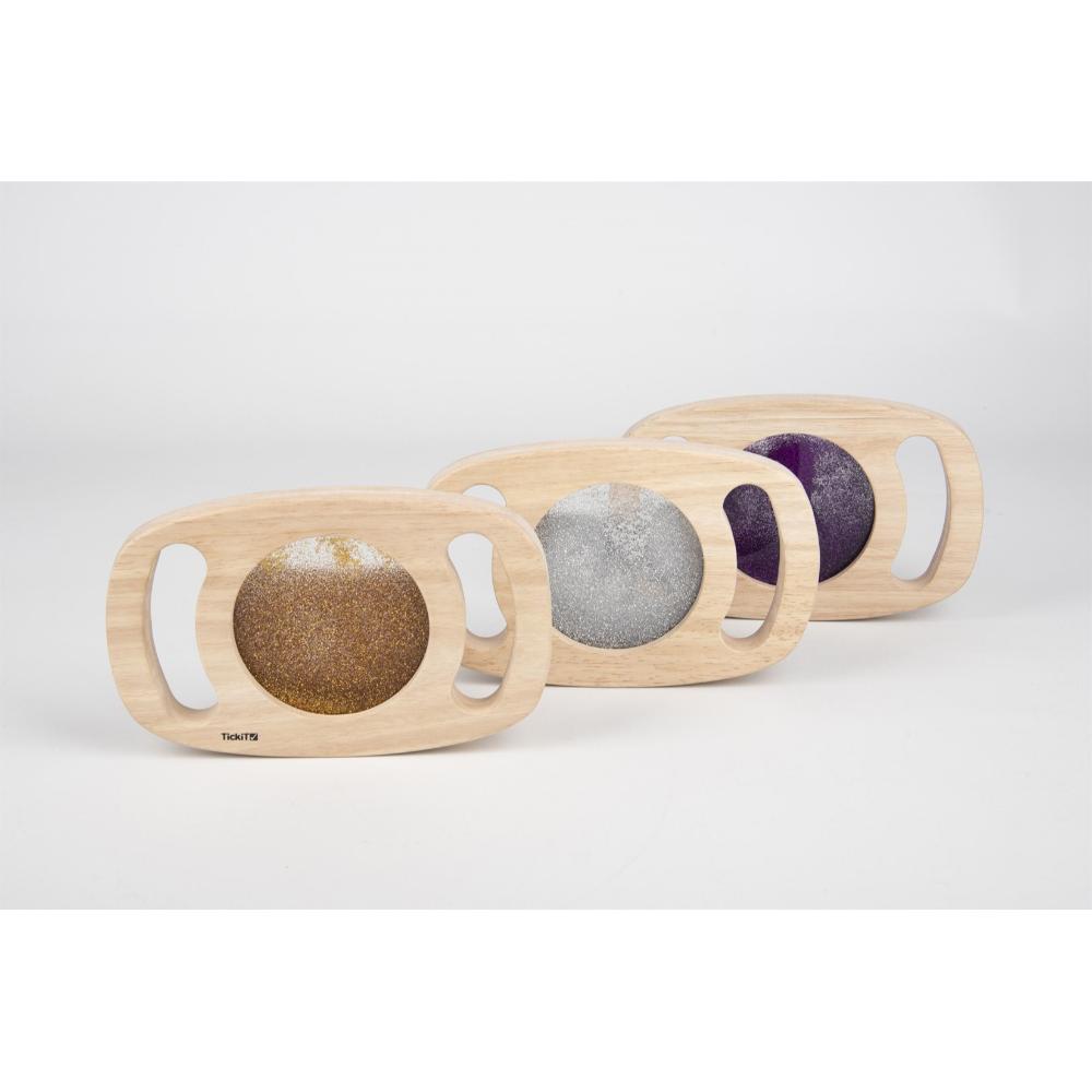 Onze tickit® Easy Hold Glitter Panel Sets zijn gemakkelijk vast te houden frames van massief rubberhout met handvatten, waarin verschillende kleurrijke, sprankelende glitterinzetstukken zitten die uw kind helpen om op een unieke manier met de wereld om hem heen om te gaan. Gebruik met ons assortiment lichtpanelen om de ervaring te verbeteren.